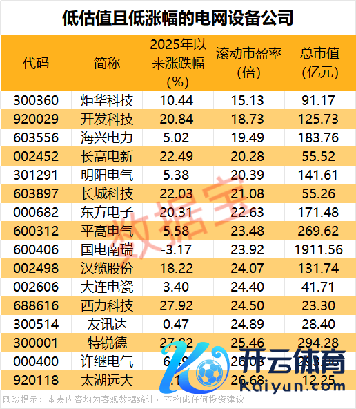低估值且低涨幅的电网斥地公司出炉低估值且低涨幅的电网斥地公司出炉