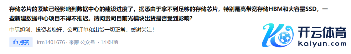 中际旭创:公司订单和出货一切平常开云体育中际旭创:公司订单和出货一切平常