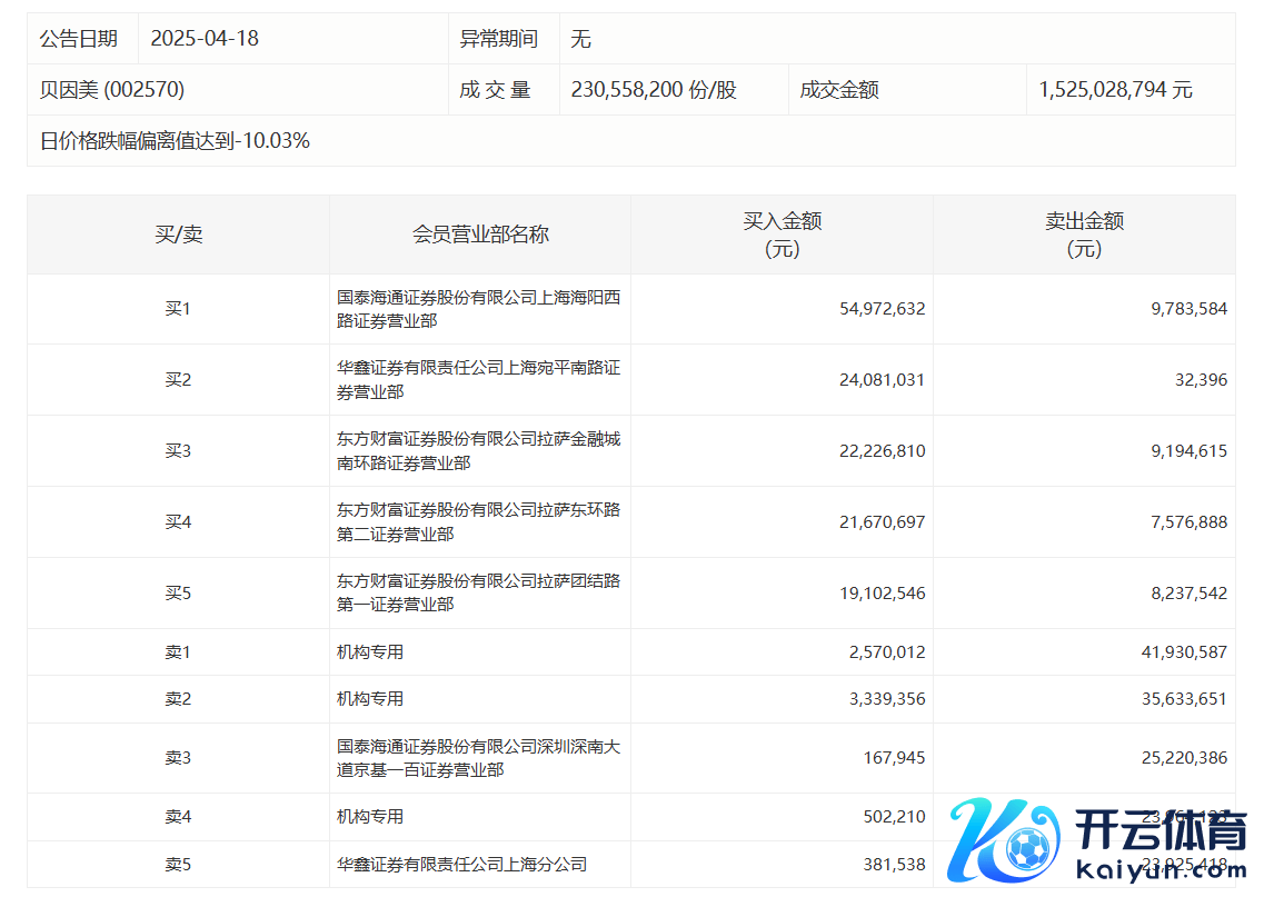 贝因好意思当天跌停 三机构专用席位净卖出9511.68万元体育游戏app平台贝因好意思当天跌停 三机构专用席位净卖出9511.68万元