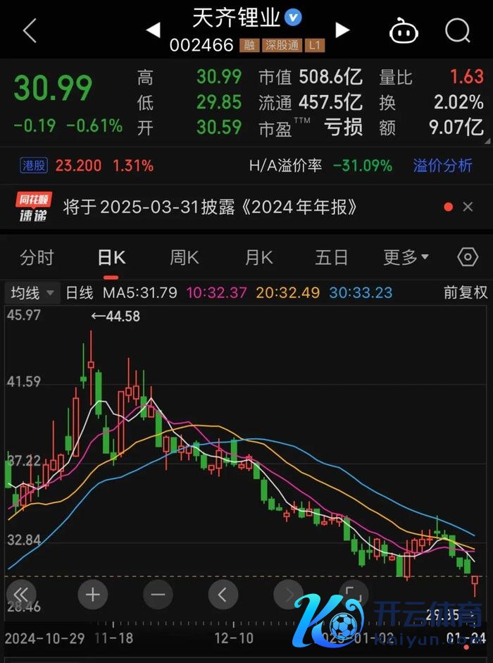 而经历了2024年的多番颤动后,这位“80后”新掌门所面对的阵势赫然终点严峻。二级市集上,天王人锂业A股总市值已从2024年4月29日的648亿元缩水至如今的493亿元。