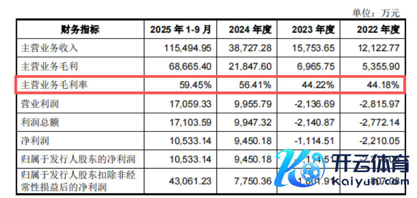 价钱执续下探却并未株连盈利。招股书透露,公司主营业务毛利率从2022年的44.18%升至2025年前三季度的59.45%,呈现出逐年走高趋势。
