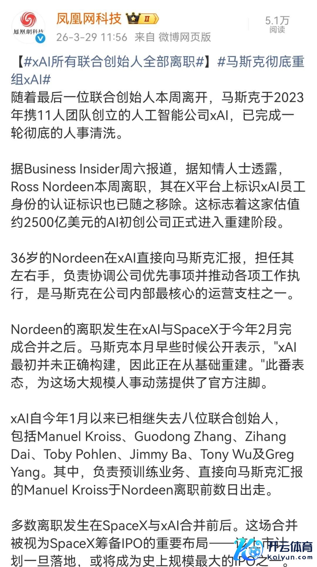 而他的去职,意味着xAI初创团队的全面溃散,估值约2500亿好意思元的xAI精采插足重建阶段。