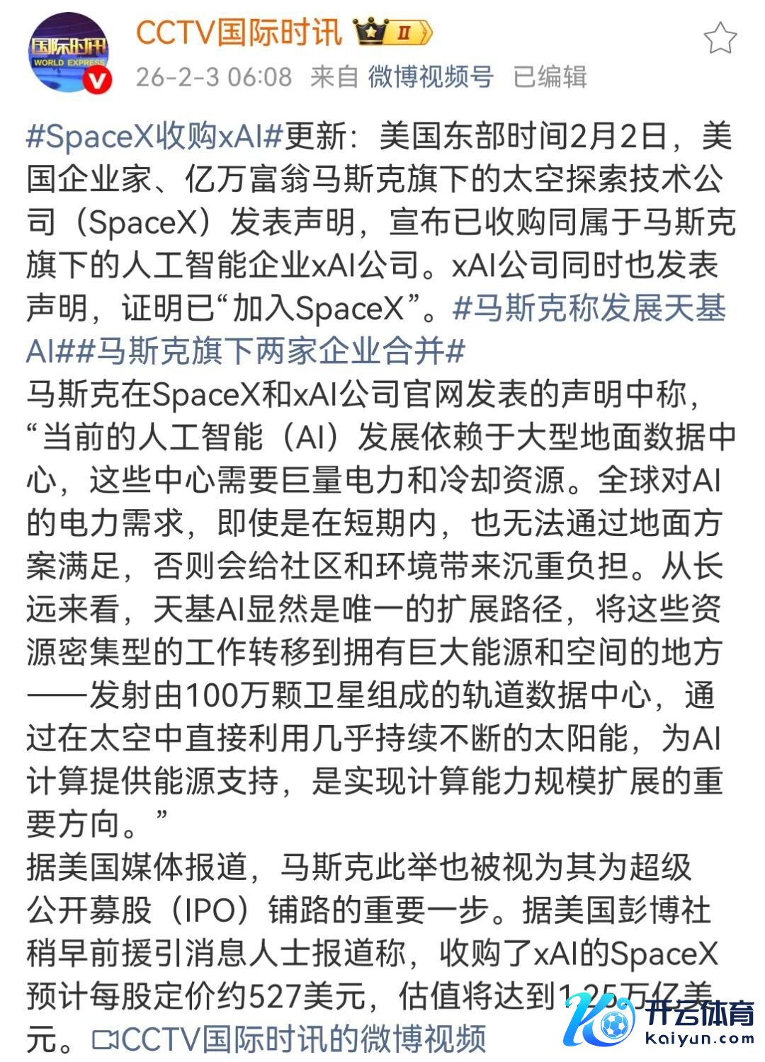 2月2日,马斯克文牍SpaceX以全股票交往形势收购xAI,新实体估值一度飙升至1.25万亿好意思元,其中SpaceX估值1万亿好意思元,xAI估值2500亿好意思元,创下企业并购估值的历史记载。