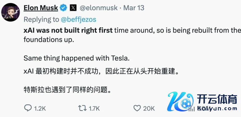 而马斯克对此的回复是:“xAI领先并未正确构建,因此正在从基础重建。”