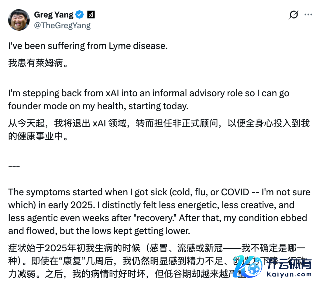 1月,Grok中枢架构师Greg Yang因“永久高强度就业”导致健康问题,被会诊出莱姆病后文牍退出精深就业。