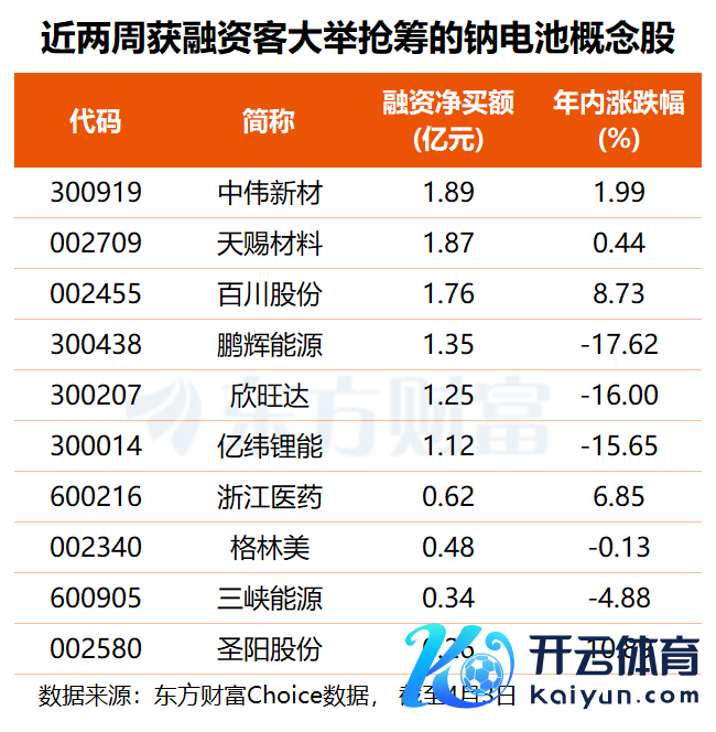 资金方面,东方钞票Choice数据自满,近两周共有15只钠电板看法股得回千万元以上融资净买入,其中,中伟新材、天赐材料分歧获杠杆资金加仓1.89亿和1.87亿元,百川股份也获融资客抢筹1.76亿元,鹏辉动力、欣旺达、亿纬锂能融资净买额均在1.12亿至1.35亿元之间。