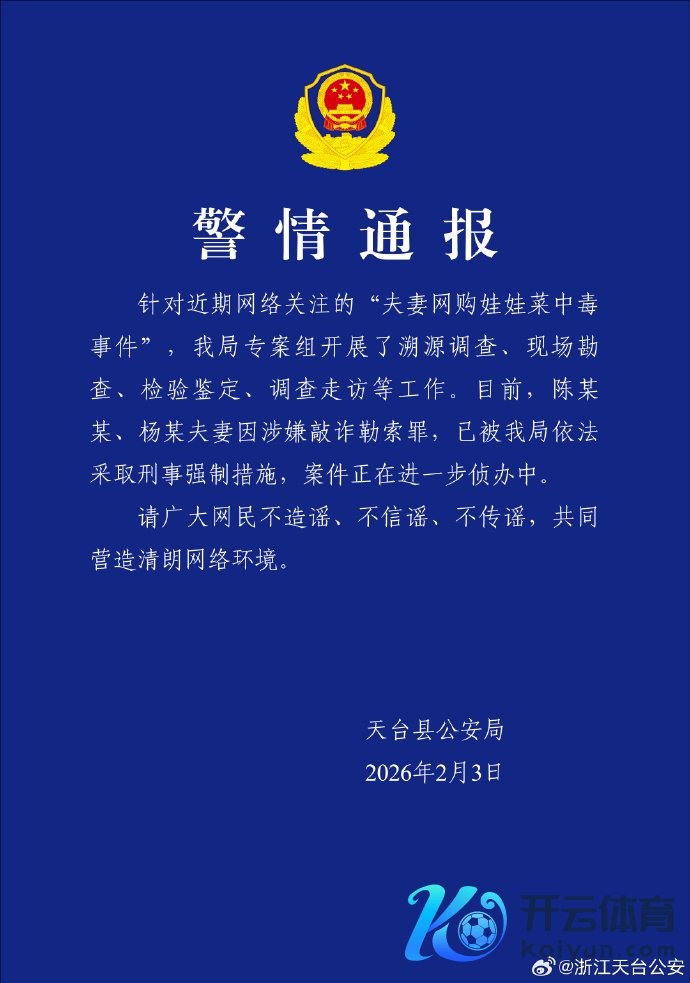 警方通报:网购娃娃菜中毒浑家涉敲诈打单罪,已被禁受刑事强制步伐警方通报:网购娃娃菜中毒浑家涉敲诈打单罪,已被禁受刑事强制步伐