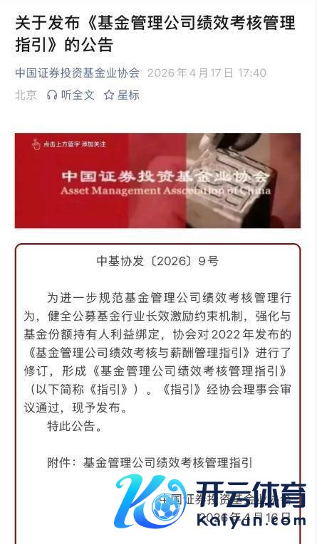 4月17日,中国基金业协会矫正并发布《基金料理公司绩效考查料理指引》(以下简称《考查指引》),自愿布之日起试验。